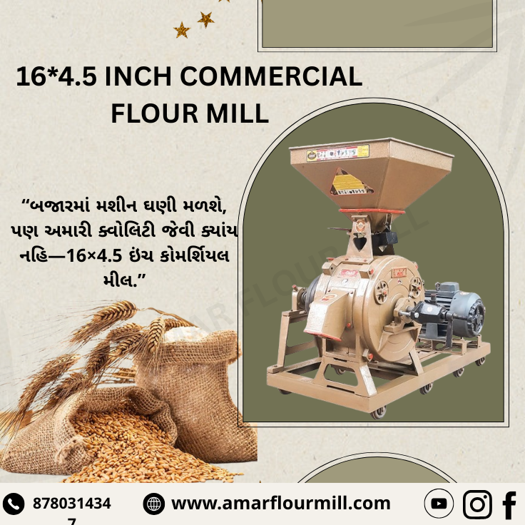 Contact No:-+91 8780314347 अगर आपका लक्ष्य है रोज़ ज्यादा प्रोडक्शन, तेज़ ग्राइंडिंग और बिना रुके लगातार आउटपुट, तो 16×4.5 इंच कमर्शियल फ्लौर मिल आपके व्यवसाय का सबसे मजबूत पार्टनर साबित होती है। यह मशीन खास तौर पर उन बिज़नेस के लिए बनाई गई है जहाँ रोज बड़े लेवल पर अनाज, आटा और मसालों की ग्राइंडिंग होती है। 16×4.5 इंच मॉडल की सबसे बड़ी पहचान है इसका स्मूथ परफॉर्मेंस और कम समय में ज्यादा आउटपुट देने की क्षमता। चाहे आपका काम अटा चक्की शॉप हो, ग्राइंडिंग यूनिट हो या फिर होटल-सप्लाई—यह मिल हर जगह उच्च लेवल की क्वालिटी बनाए रखती है। लगातार चलने पर भी यह मशीन स्थिरता बनाकर रखती है, जिससे आपके बिज़नेस की स्पीड कभी कम नहीं होती। इस मिल की खासियत इसका commercial-grade performance है जो हर बार एक जैसा फाइन और क्लीन रिज़ल्ट देता है। समय की बचत, प्रॉडक्शन की तेजी और कस्टमर को बेहतर क्वालिटी—ये सभी चीजें इस मशीन को एक स्मार्ट इन्वेस्टमेंट बनाती हैं। जिन व्यवसायों का फोकस है अधिक output और लंबे समय तक चलने वाली क्वालिटी, उनके लिए 16×4.5 इंच कमर्शियल फ्लौर मिल एक perfect choice है। यह मशीन न सिर्फ आपकी efficiency बढ़ाती है बल्कि आपके बिज़नेस की मार्केट वैल्यू को भी मजबूत करती है। #CommercialFlourMill #16x4_5FlourMill #AttaChakkiMachine #HighProductionMill #GrindingMachine #BusinessMachine #HeavyDutyFlourMill #IndustrialFlourMill #DailyUseMachine #FastGrindingMill #AttaMakerCommercial #FlourMillForBusiness