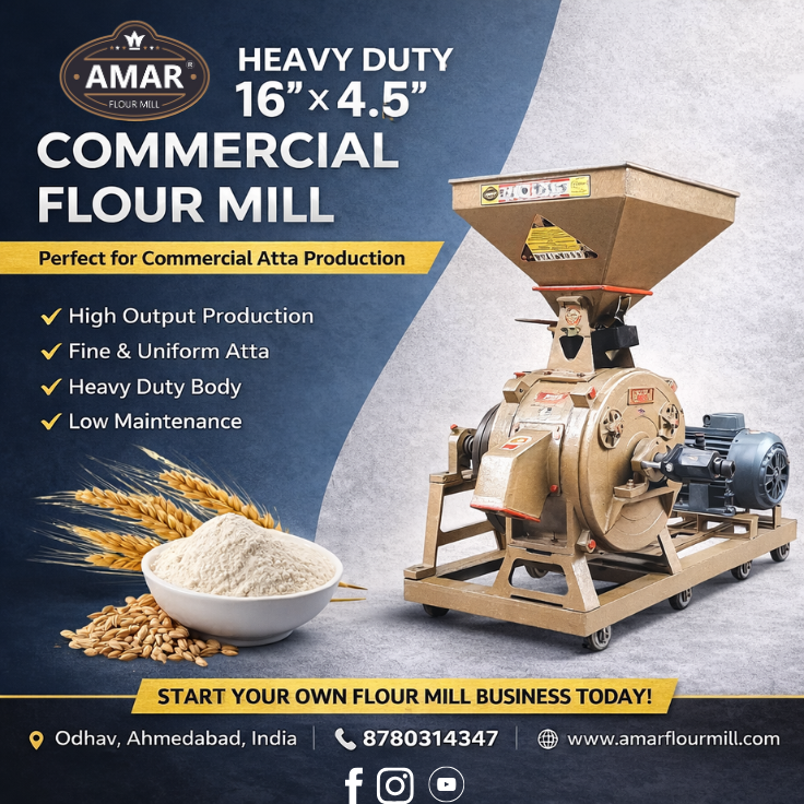 Contact No :- +91 8780314347 જો તમે આટા ચક્કી બિઝનેસ શરૂ કરવાની યોજના બનાવી રહ્યા છો, તો AMAR Heavy Duty Commercial Flour Mill (16” x 4.5”) તમારા માટે ઉત્તમ પસંદગી છે. આ મશીન ઉચ્ચ ઉત્પાદન, ફાઇન અને યુનિફોર્મ આટું, હેવી ડ્યૂટી બોડી અને ઓછા મેન્ટેનેન્સ સાથે કમર્શિયલ ઉપયોગ માટે ખાસ બનાવવામાં આવ્યું છે. હોટેલ, રેસ્ટોરન્ટ, રિટેલ શોપ કે નવા ઉદ્યોગ સાહસિકો માટે આ મશીન વિશ્વસનીય અને લાંબા સમય સુધી નફો આપનાર સાબિત થાય છે. 📞 વધુ માહિતી માટે આજે જ સંપર્ક કરો. #CommercialFlourMill #AtaChakki #FlourMillBusiness #GujaratiBusiness #SmallBusinessIndia #StartupIndia #SelfEmployment #MakeInIndia #AMARFlourMill