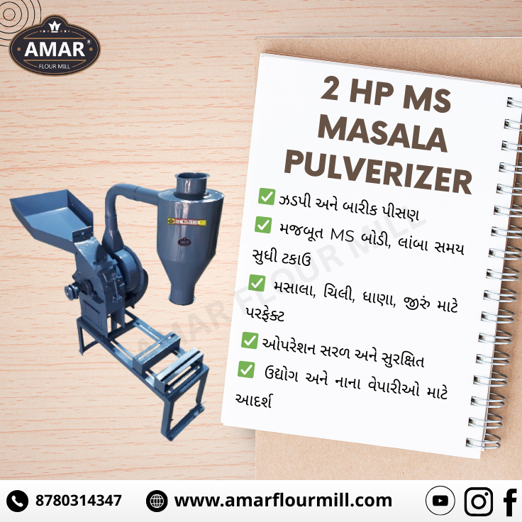 આજના સમયમાં મસાલા ઉદ્યોગ ઝડપથી આગળ વધી રહ્યો છે. ગુણવત્તાવાળા અને એકસરખા મસાલા પાવડર બનાવવા માટે વિશ્વસનીય મશીન હોવું અત્યંત જરૂરી છે. Amar Flour Millનું 2 HP MS Masala Pulverizer ખાસ કરીને હોટલ, કિરાણા દુકાન, નાના મસાલા ઉત્પાદકો અને સ્ટાર્ટઅપ્સ માટે ડિઝાઇન કરવામાં આવ્યું છે. 🔧 મશીનની મુખ્ય ખાસિયતો ✔️ મજબૂત MS બોડી – લાંબા સમય સુધી ટકાઉ ✔️ ઝડપી અને એકસરખું ગ્રાઇન્ડિંગ ✔️ ઓછી વીજ વપરાશ સાથે વધુ ઉત્પાદન ✔️ ઓપરેશન સરળ અને સુરક્ષિત ✔️ હળદર, મરચાં, ધાણા, જીરૂ, સુકા મસાલા માટે પરફેક્ટ 🏭 કોને માટે આ મશીન યોગ્ય છે? 1. મસાલા ઉત્પાદક નાના ઉદ્યોગ 2. હોટલ અને રેસ્ટોરન્ટ 3. કિરાણા અને હોલસેલ વેપારીઓ 4. ઘરગથ્થુ મસાલા બિઝનેસ શરૂ કરવા ઇચ્છતા લોકો 💰 ઓછા રોકાણમાં વધુ નફો આ મશીન ઓછી મેન્ટેનેન્સ સાથે લાંબા સમય સુધી કાર્યક્ષમ રહે છે. ફેક્ટરી ડાયરેક્ટ સપ્લાય હોવાથી ખર્ચ ઓછો અને નફો વધુ મળે છે. જો તમે તમારો મસાલા બિઝનેસ વધારવા માંગતા હો, તો આ મશીન તમારા માટે ઉત્તમ પસંદગી છે. 📞 આજે જ સંપર્ક કરો 📱 8780314347 #MasalaPulverizer #MasalaMachine #UdyogGujarat #SmallBusinessGujarat #MakeInIndia #FoodProcessingMachine #MasalaUdyog #StartupGujarat #AmarFlourMill