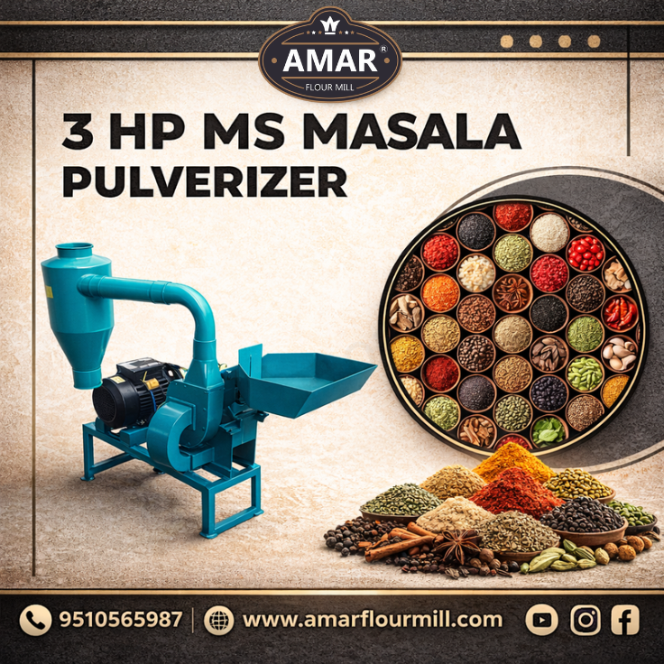 आज के समय में मसालों का इस्तेमाल हर घर और हर होटल में होता है। भारत में मसाला इंडस्ट्री तेजी से बढ़ रही है और लोग ताज़े और शुद्ध मसाले पसंद करते हैं। अगर आप मसाला पीसने का बिज़नेस शुरू करना चाहते हैं या अपने मौजूदा बिज़नेस को बढ़ाना चाहते हैं, तो एक अच्छी क्वालिटी की 3 HP MS मसाला पल्वराइज़र मशीन आपके लिए बेहतरीन विकल्प हो सकती है। यह मशीन खासतौर पर मसाला ग्राइंडिंग के लिए डिज़ाइन की गई है। इसकी मदद से आप मिर्च, हल्दी, धनिया, जीरा, काली मिर्च, गरम मसाला और कई तरह के मसाले आसानी से बारीक पीस सकते हैं। इसकी पावरफुल 3 HP मोटर और मजबूत MS (माइल्ड स्टील) बॉडी इसे लंबे समय तक चलने वाली और भरोसेमंद मशीन बनाती है। इस मशीन की सबसे बड़ी खासियत यह है कि यह कम समय में ज्यादा मात्रा में मसाला पीसने की क्षमता रखती है। इसलिए यह मशीन छोटे और बड़े दोनों तरह के बिज़नेस के लिए उपयुक्त है, जैसे कि मसाला मैन्युफैक्चरिंग यूनिट, किराना दुकान, फ्लोर मिल, होटल और फूड इंडस्ट्री। अगर आप अपने ग्राहकों को ताज़े और शुद्ध मसाले देना चाहते हैं और अपने बिज़नेस को आगे बढ़ाना चाहते हैं, तो AMAR Flour Mill की 3 HP MS मसाला पल्वराइज़र मशीन आपके लिए एक बेहतरीन निवेश साबित हो सकती है। अधिक जानकारी और ऑर्डर के लिए अभी संपर्क करें। 📞 Contact: 9510565987 #masalamachine #pulverizermachine #masalagrinder #flourmillbusiness #smallbusinessindia #masalabusiness #foodprocessingmachine #indianbusiness #businessidea #startupindia #spicemachine #grindingmachine #amarflourmill #foodindustry #entrepreneurindia