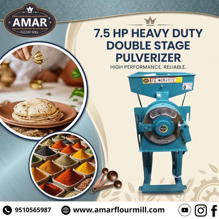 Contact No :- +91 9510565987 આજના સ્પર્ધાત્મક ફૂડ અને મસાલા ઉદ્યોગમાં, ઝડપી અને ગુણવત્તાવાળી પીસાઈ ખૂબ જ જરૂરી છે. જો તમે તમારા બિઝનેસને વધુ પ્રોફેશનલ લેવલ પર લઈ જવા માંગો છો, તો 7.5 HP હેવી ડ્યુટી ડબલ સ્ટેજ પલ્વરાઈઝર એક પરફેક્ટ સોલ્યુશન છે. ⚙️ ડબલ સ્ટેજ ટેકનોલોજી કેમ ખાસ? ડબલ સ્ટેજ ગ્રાઈન્ડિંગ સિસ્ટમના કારણે મશીન બે તબક્કામાં પીસાઈ કરે છે, જેના કારણે તમને મળે છે વધુ ફાઇન, સ્મૂથ અને સમાન પાવડર. આ ટેકનોલોજી ખાસ કરીને મસાલા, અનાજ અને ફૂડ પ્રોડક્ટ્સ માટે અત્યંત અસરકારક છે. 🔥 શક્તિશાળી 7.5 HP મોટર આ મશીનમાં આવેલ 7.5 HP નો પાવરફુલ મોટર સતત અને હાઈ સ્પીડ પરફોર્મન્સ આપે છે. મોટા પ્રમાણમાં પ્રોડક્શન માટે પણ આ મશીન સરળતાથી કામ કરે છે, એટલે કે સમય બચત અને વધુ આઉટપુટ. 💪 હેવી ડ્યુટી બાંધકામ મજબૂત બોડી અને ઇન્ડસ્ટ્રીયલ ગ્રેડ મટીરિયલ સાથે બનેલું આ મશીન લાંબા સમય સુધી ટકાઉ રહે છે. લો મેન્ટેનન્સ સાથે તમે નિરાંતે લાંબા સમય સુધી ઉપયોગ કરી શકો છો. 🌶️ ઉપયોગ માટે યોગ્ય મસાલા ઉત્પાદન યુનિટ ફ્લોર મિલ અને ફૂડ પ્રોસેસિંગ રેસ્ટોરન્ટ અને કેટરિંગ બિઝનેસ નાના અને મોટા ઉદ્યોગો 📈 બિઝનેસ માટે સ્માર્ટ રોકાણ ઉચ્ચ ગુણવત્તાની પીસાઈ તમારા પ્રોડક્ટની કિંમત અને વિશ્વાસ વધારવામાં મદદ કરે છે. Amar Industries since 1999 ની legacy સાથે આ મશીન તમને આપે છે વિશ્વસનીયતા, પરફોર્મન્સ અને લાંબા સમય સુધી ચાલે તેવો વિશ્વાસ. #PulverizerMachine #MasalaGrinding #HeavyDutyMachine #FoodProcessingIndia #GujaratiBusiness #MakeInIndia #CommercialMachine #AmarFlourMill #AmarIndustriesLegacy #BusinessGrowth #StartupIndia #RestaurantSetup #SpiceBusiness #IndustrialMachine #AhmedabadBusiness