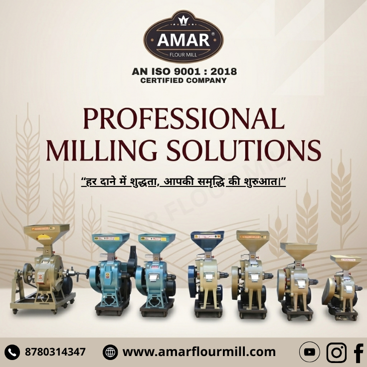 आज के प्रतिस्पर्धी दौर में फूड प्रोसेसिंग और फ्लोर मिल इंडस्ट्री तेजी से आगे बढ़ रही है। ऐसे में अगर आप अपने बिज़नेस को एक नई ऊंचाई पर ले जाना चाहते हैं, तो प्रोफेशनल मिलिंग सॉल्यूशंस अपनाना बेहद जरूरी है। AMAR Flour Mill द्वारा प्रदान की जाने वाली आधुनिक मशीनें न केवल उच्च गुणवत्ता (High Quality) का उत्पादन देती हैं, बल्कि आपके काम को आसान और तेज़ भी बनाती हैं। चाहे आप आटा चक्की का बिज़नेस शुरू कर रहे हों या मसाला ग्राइंडिंग यूनिट, सही मशीन का चयन ही आपकी सफलता तय करता है। 💼 किसके लिए है यह सॉल्यूशन? 1. छोटे और मध्यम उद्योग (SMEs) 2. स्टार्टअप बिज़नेस 3. फ्लोर मिल मालिक 4. फूड प्रोसेसिंग यूनिट #FlourMill #MillingSolutions #FoodProcessing #AttaChakki #MasalaGrinding #IndustrialMachines #SmallBusinessIndia #MakeInIndia #BusinessGrowth #StartupIndia #EntrepreneurLife #ManufacturingIndia #AmarFlourMill #QualityMatters #HighEfficiency #GrindingMachine